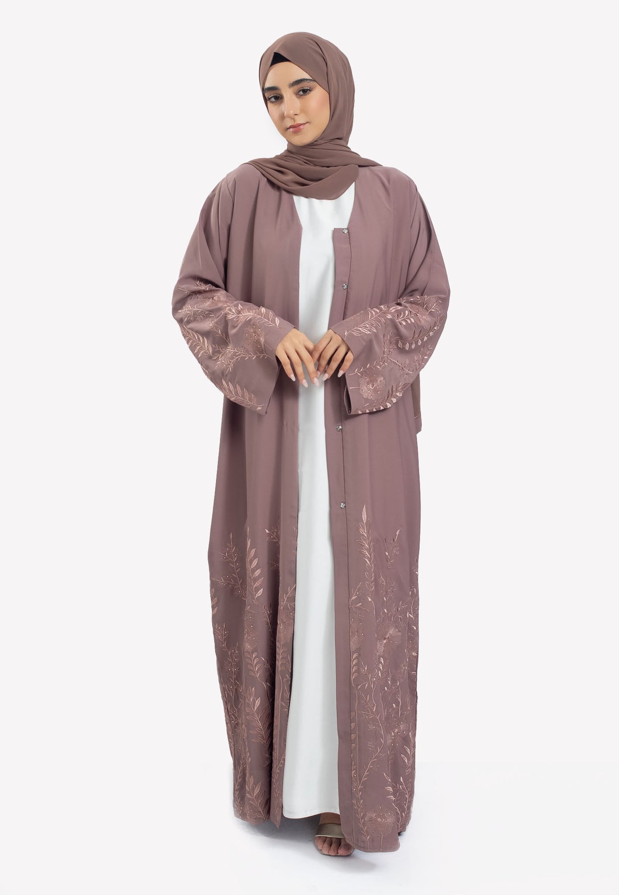 Premium Amira Luxe Open Abaya with Ornate Floral Embroidery