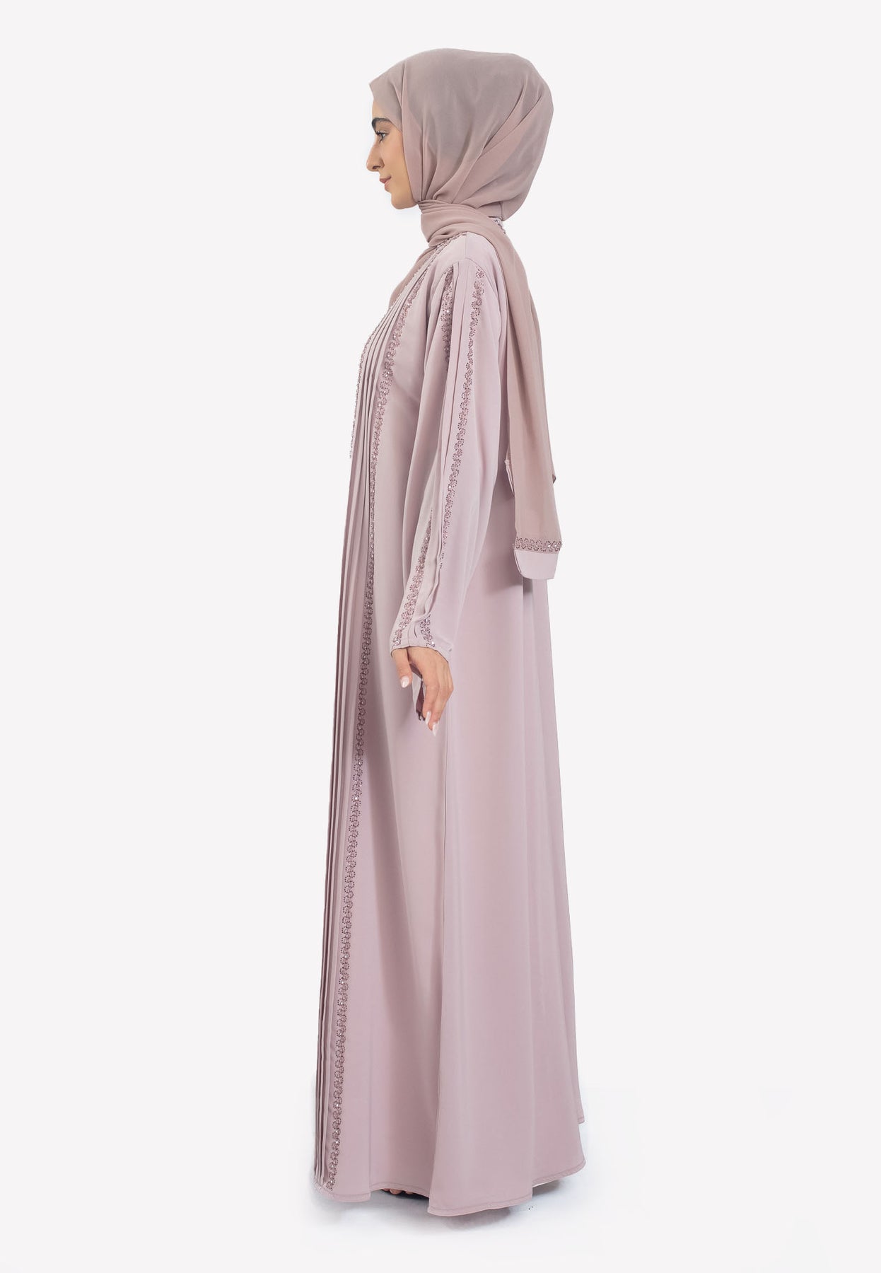 Premium Blush Seraphina Open Abaya with Pleated Front & Swarovski Crystals