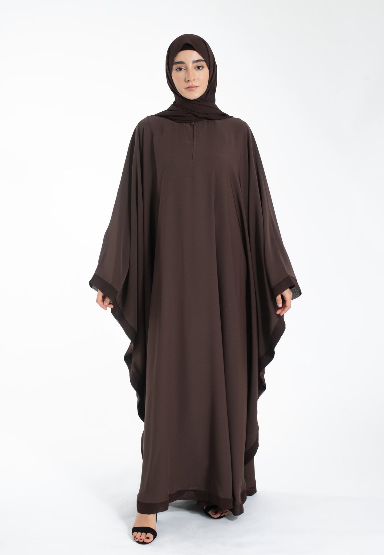 Plain Butterfly Farasha with Zip Neckline - Brown