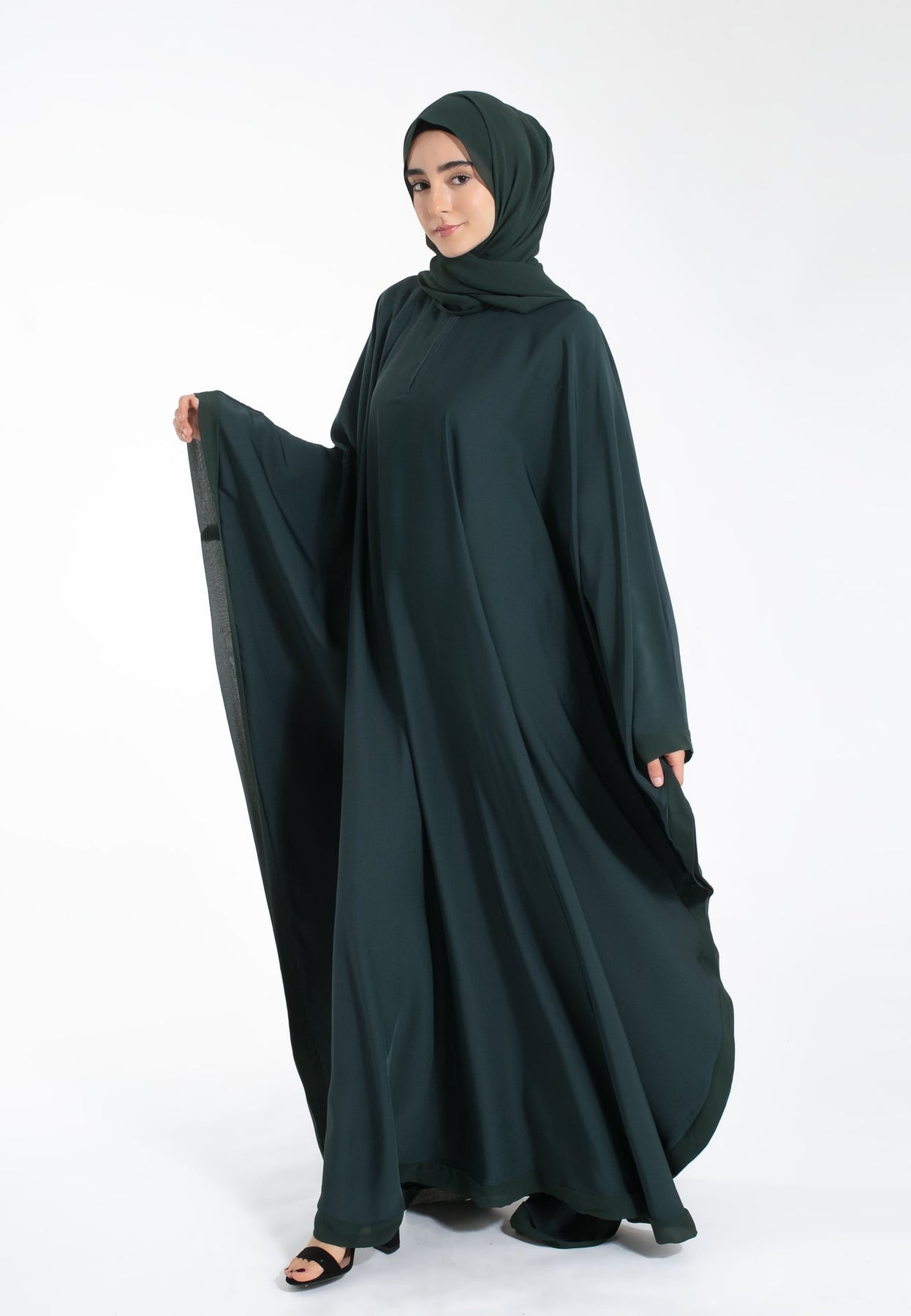 Plain Butterfly Farasha with Zip Neckline - Forest Green