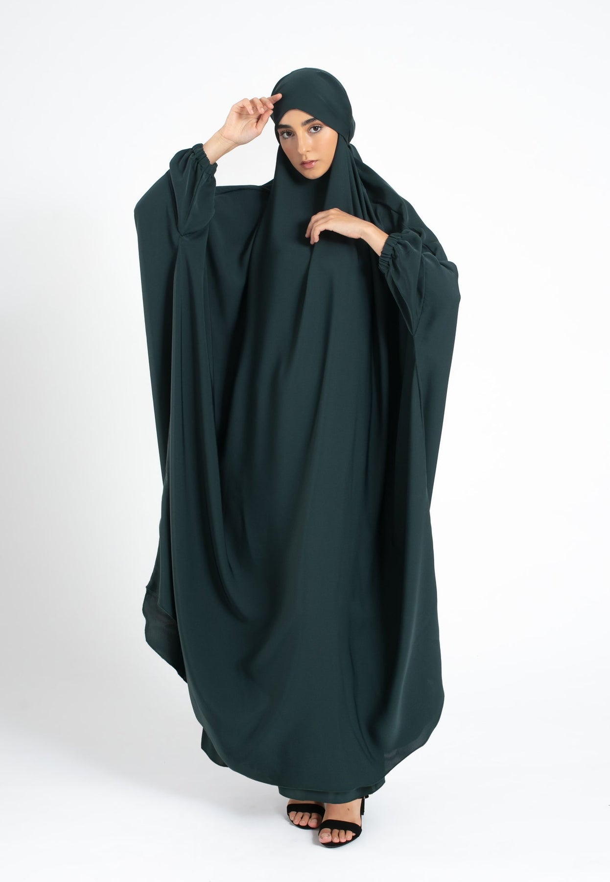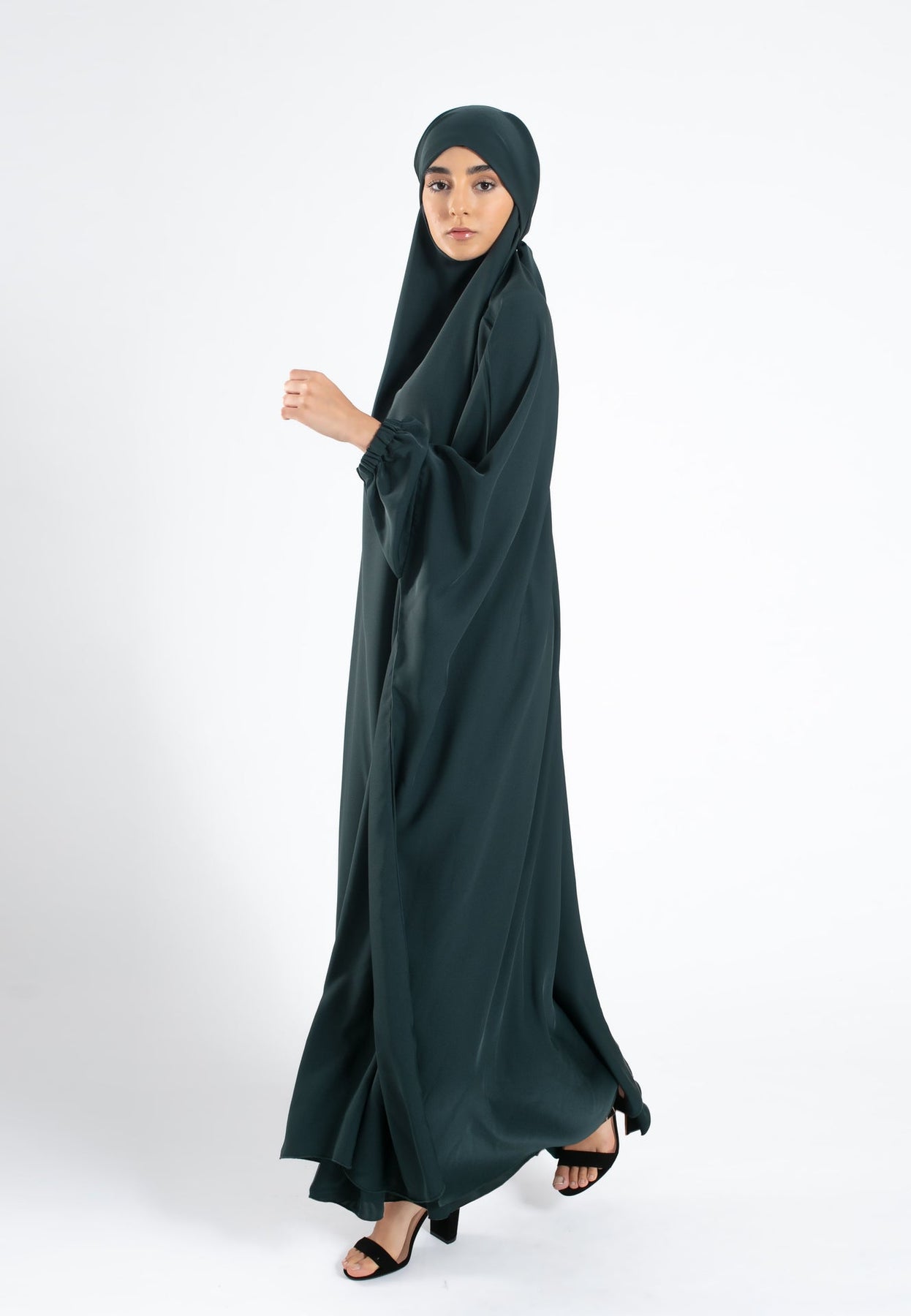 One-Piece Jilbab / Prayer Dress With Elasticated Sleeves - Forest Green