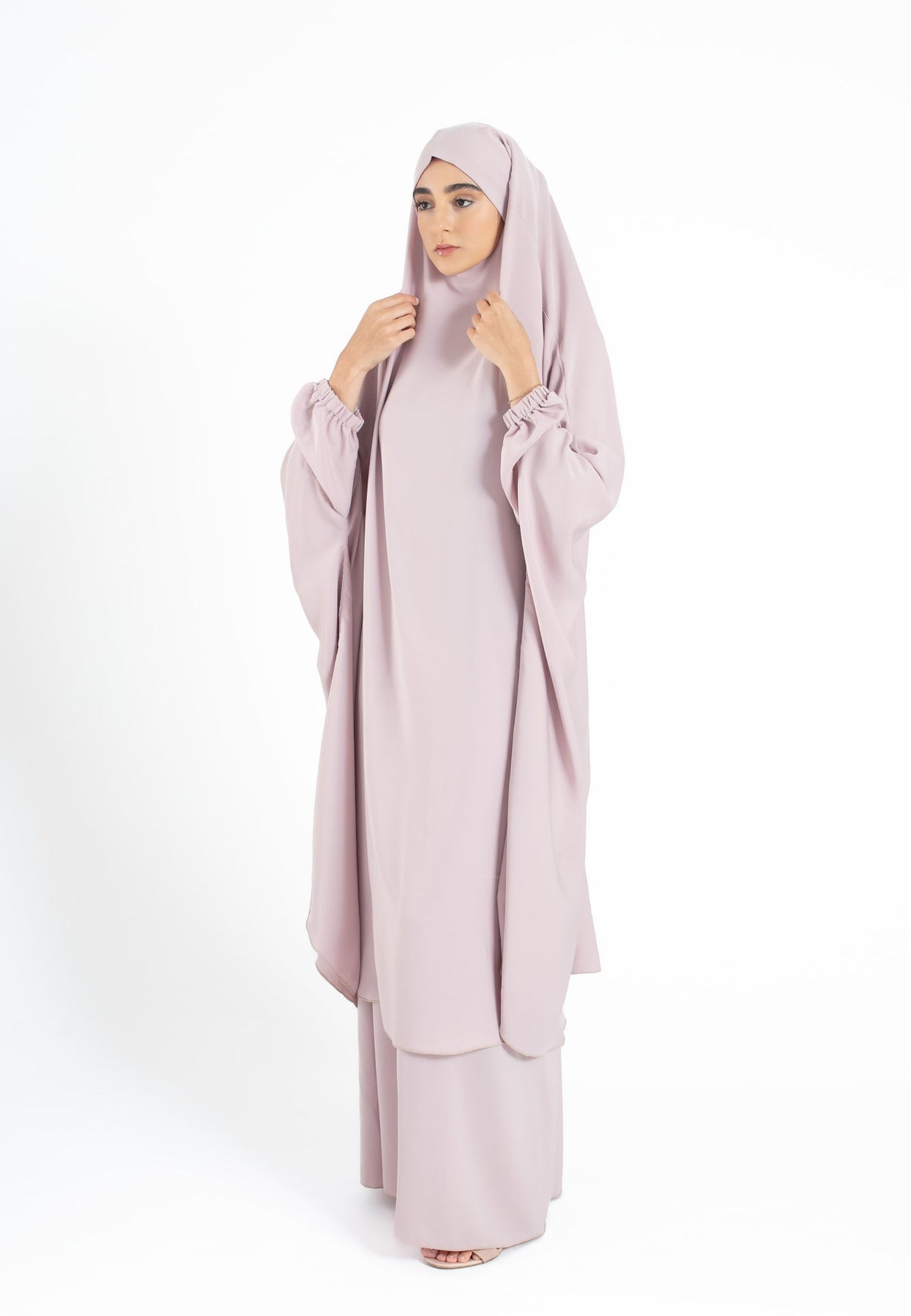 Elevate your daily prayers and casual wear with our premium Two-Piece Baby Pink Jilbab / Prayer Set. Crafted from the finest Nida fabric, this set offers unparalleled comfort and lightweight elegance, making it an essential addition to your wardrobe. Perfect for Ramadan, Umrah, Prayers and daily wear, this set ensures you look modestly stylish while feeling at ease.
