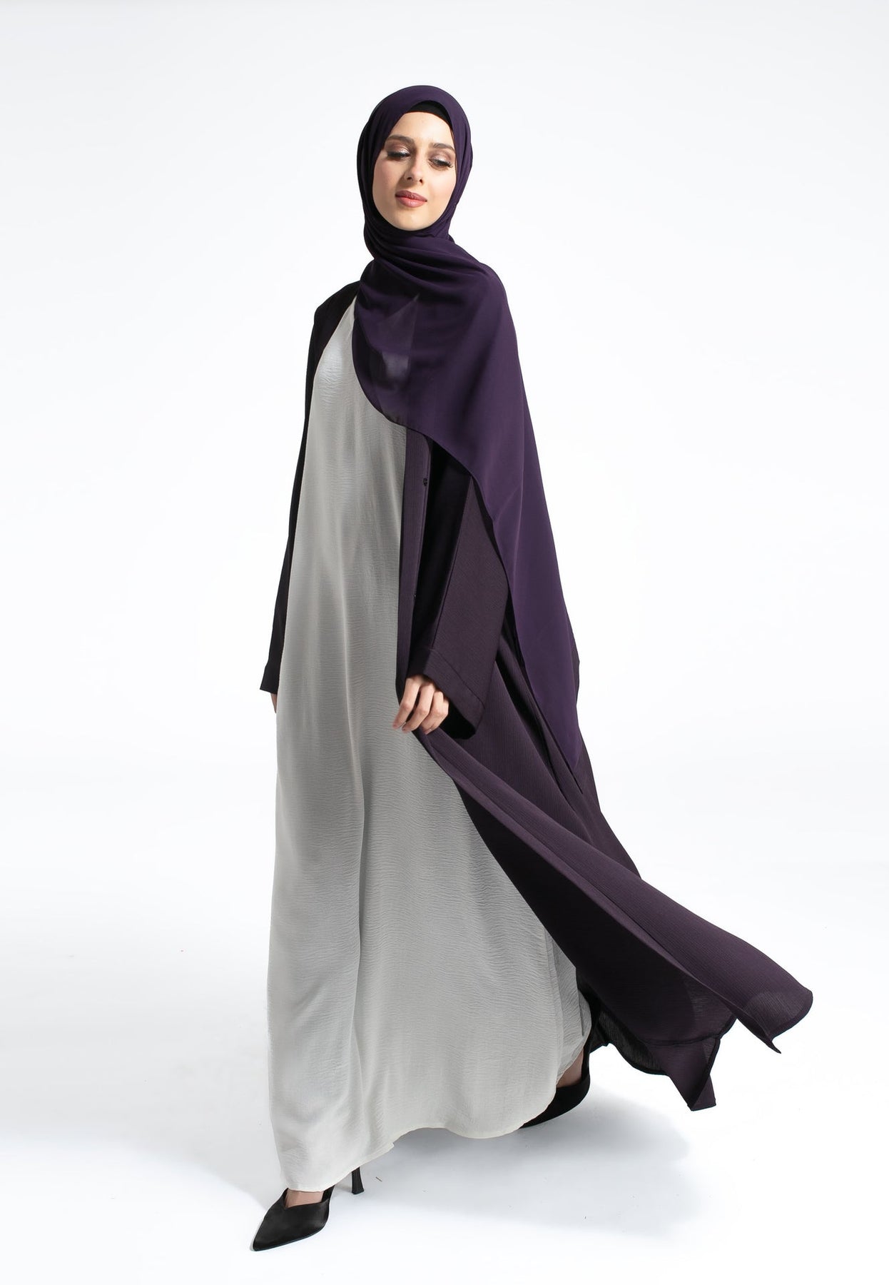 Plain Textured Open Abaya - Deep Purple